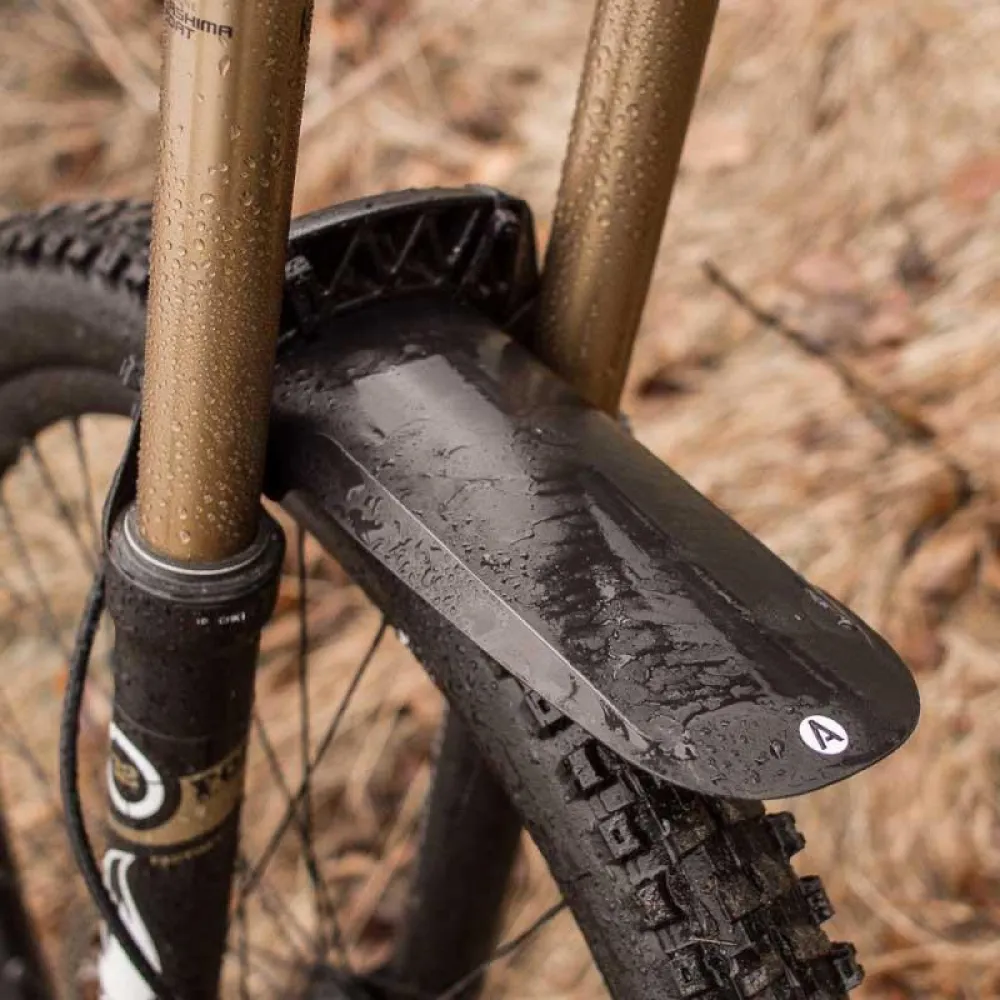 Para el verdadero espíritu de Ass Savers, hemos adoptado el enfoque minimalista con un poco de pensamiento inteligente adicional. El resultado es un guardabarros delantero montado en el tenedor con un diseño discreto y una eficiencia insuperable cuando se trata de mantener la cara libre de suciedad. El diseño presenta innovadores deflectores que se ajustan a los neumáticos y que se pueden ajustar para que prácticamente no pase barro.