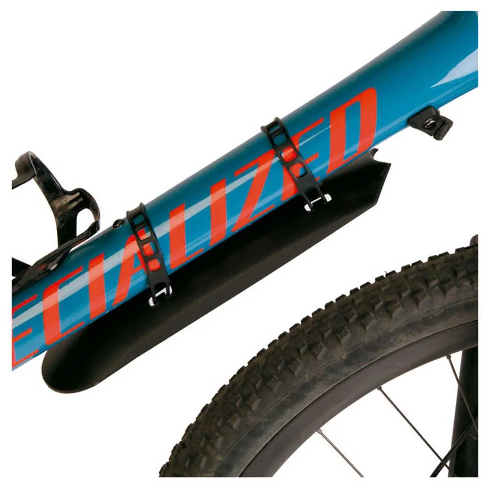 Mudplate le ofrece una excelente protección, en cualquier carretera. El guardabarros utiliza correas elastoméricas para ser montadas en el tubo descendente y permite el ajuste en todos los tubos de marco regulares. Fácil montaje, no se requieren herramientas para ensamblar el guardabarros.
