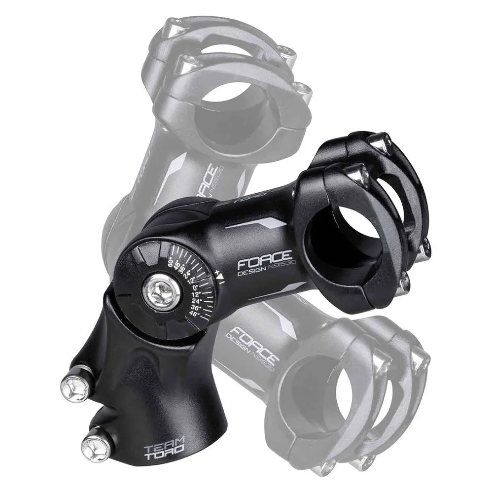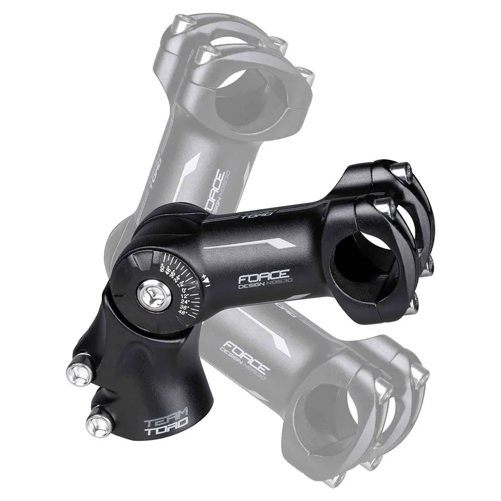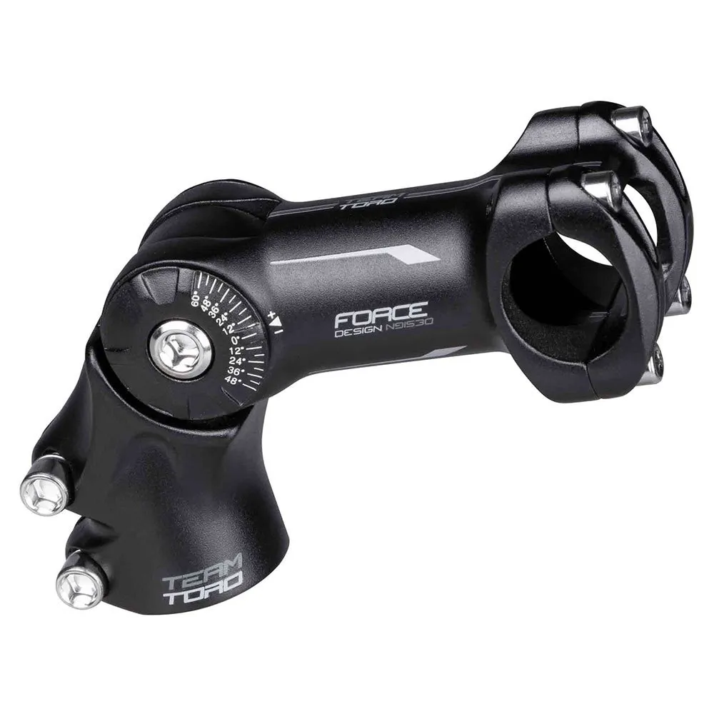 Potencia FORCE de aluminio regulable en ángulo con abrazadera de manillar de 4 tornillos y diámetro de abrazadera de manillar de 31,8 mm.