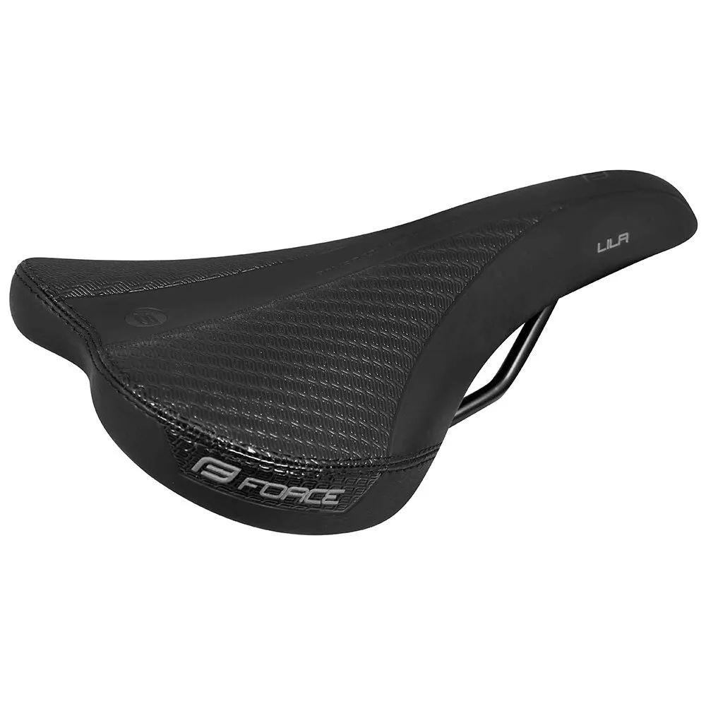 Sillín LILA de FORCE para mujer, ligeramente redondeado con un acolchado más blando para convertirse en un sillín muy confortable, con una estructura un poco más ancha y con un rebaje para reducir la presión en las zonas sensibles.