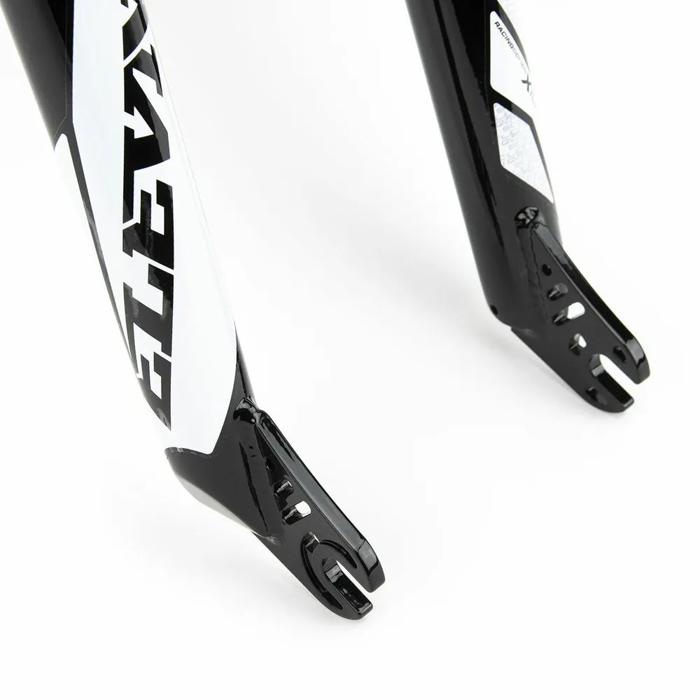 Probada y aprobada por los corredores del equipo CHASE, la horquilla ELEVN OS20 Tapered es una de las más ligeras y resistentes del mercado de BMX Race. Aún sin límite de peso, mantiene características como el tratamiento térmico, las punteras mecanizadas por CNC, los tubos de doble conificado y el tubo de dirección de triple conificado. Ahora se ofrece en una versión cónica para su uso en cuadros con tubo de dirección cónico de 1-1/8´´ de alto y 1,5´´ de bajo para los ciclistas que montan cuadros de tamaño OS20.