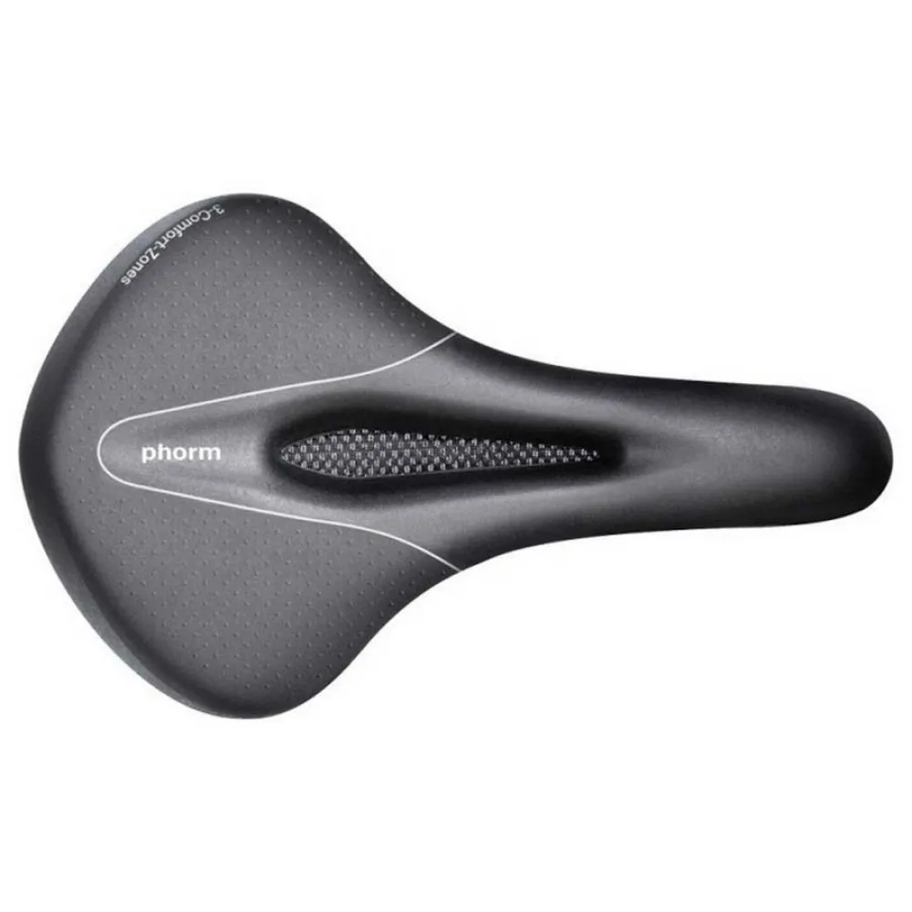 La serie Phorm Fitness ha sido desarrollada utilizando nuestro principio de confort de 3 zonas. Diseñado para ciclistas de fitness y de ocio, tanto en bicicletas de montaña como en bicicletas de carretera, que tienen una posición de asiento moderadamente deportiva. Esto significa que con el peso más adelante y un estilo de conducción más dinámico. Es el trampolín entre el turismo y las sillas de deporte. La sección trasera más ancha permite una mayor distribución del peso, pero un diseño general más estrecho para una mayor libertad de movimiento. Cubierta sintética durasilk de alta calidad, suave al tacto y duradera para todo clima. Inserciones de gel confort para una mayor distribución de la presión. ancho del hueso de asiento 110 150 mm / 4´ 33´´ 5´ 91´´ rieles: anodizado fec acero ligero. cubierta: weathermax duralux, protección contra viento y salpicaduras debajo del canal de alivio.